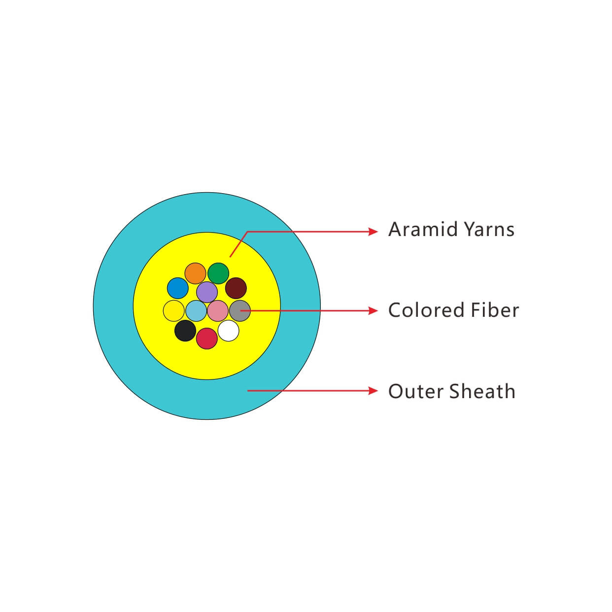 Le câble GJFV est fabriqué en appliquant uniformément des brins de fils d'aramide à mesure que le composant de résistance sur 250 μm de fibres est terminé, en tordant les fibres avec du fil d'aramide.